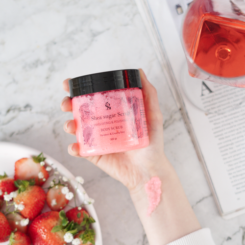 اسکراب بدن توتفرنگی؛ لایهبرداری ملایم و آبرسانی عمیق برای پوستهای خشک و حساس