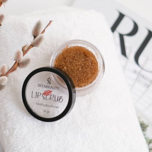 ✅ مقدار کمی از اسکراب را روی لبها قرار دهید.